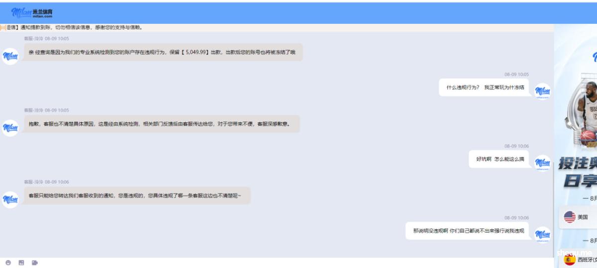 没领过任何彩金,博系平台,米兰,正常玩被冻结账号,纯黑台,账号y11bin11