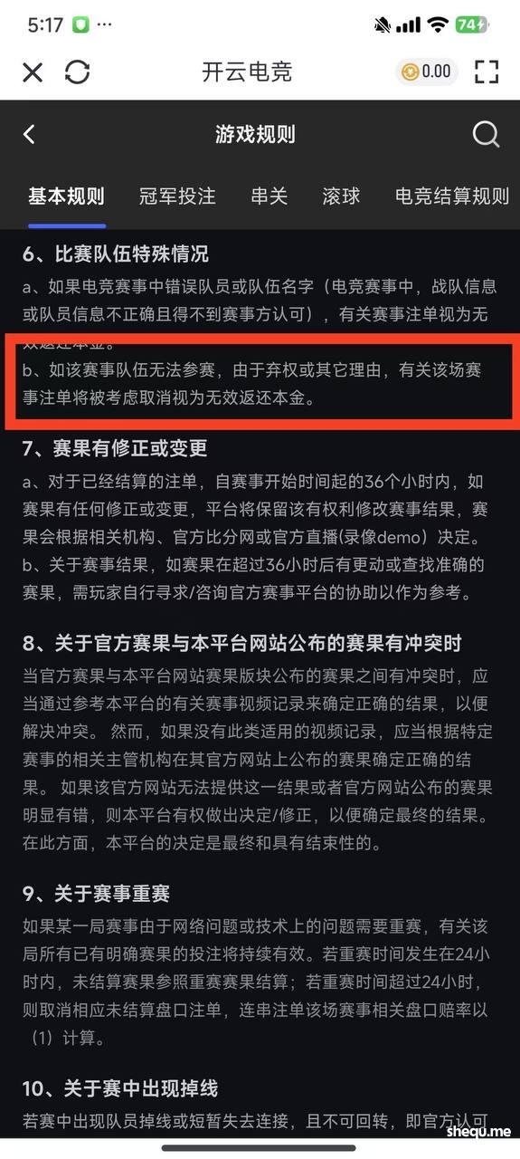 最好笑的是你们经理还给我说选手作弊了,为什么注单要作废,你们平台真是牛逼,会员投注违规就封号,选手作弊违规了就是正常的,按作弊比分来正常结算是吗