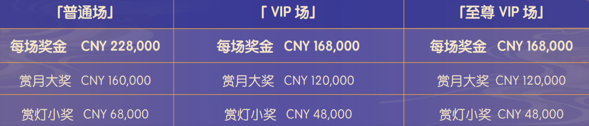 2. 活动分为「普通场」,「VIP 场」及「至尊 VIP 场」:
